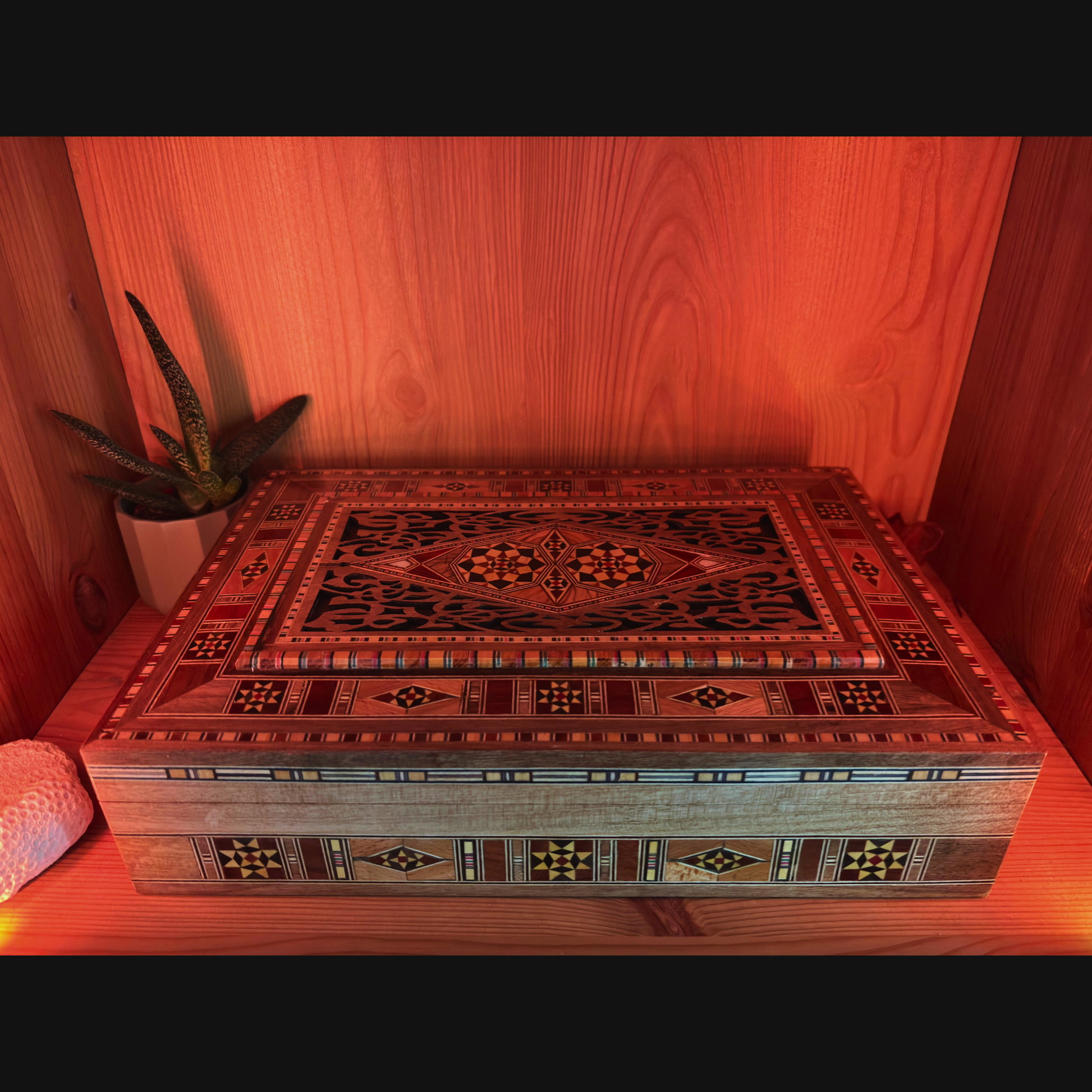 duże prostokątne pudełko mozaikowe, ręcznie robione pudełko z drewna buka, damascenskie pudełko na biżuterię, ręcznie robiona skrzynia na pamiątki, drewniane pudełko do przechowywania, rzemiosło z Damaszku, rękodzielniczy prezent, prezent ślubny, prezent na rocznicę, unikalny prezent urodzinowy, prezent z drewna premium, pudełko z Damaszku, syryjskie pudełko, prezent dla niej, prezent dla niego