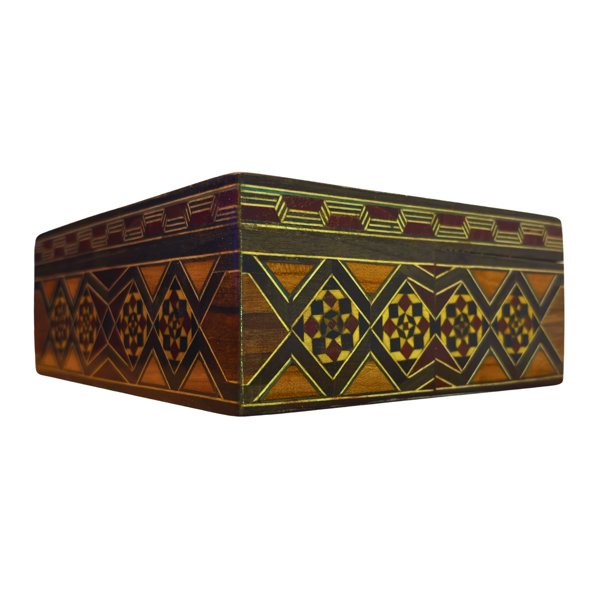 Cette boîte en mosaïque damasquine raffinée est l’œuvre du légendaire Gaby Al Dayeh, maître artisan de 90 ans et véritable symbole de l’art traditionnel de Damas.